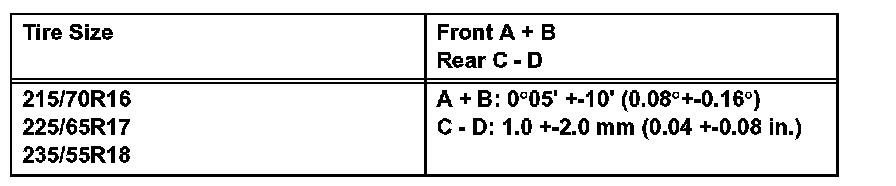 NOTICE: Before inspecting the wheel alignment, adjust the vehicle height to the specification.