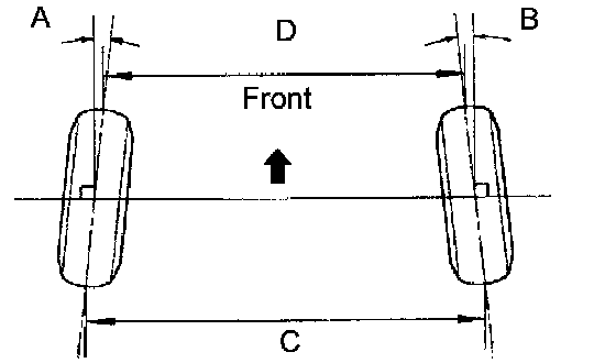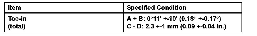 If the toe-in is not within the specified range, inspect the suspension parts and replace them if necessary.