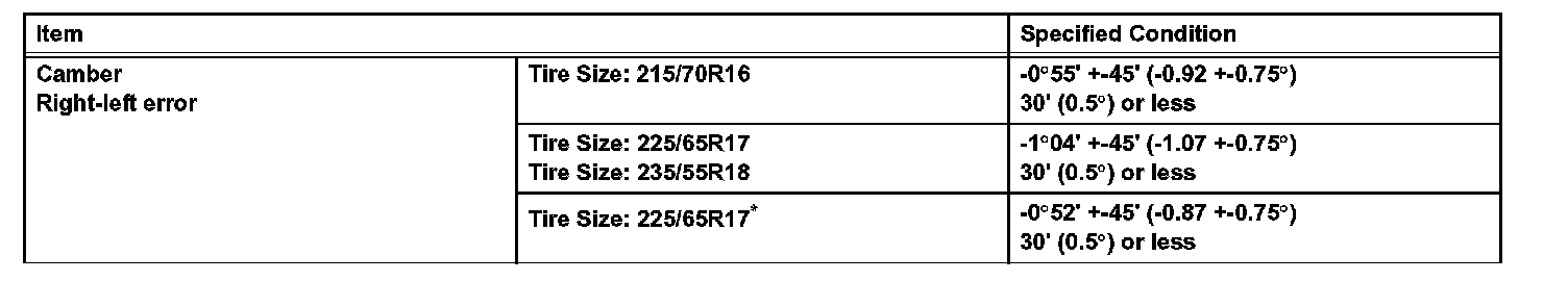- Camber is not adjustable. If the measurement is not within the specified range, inspect the suspension parts for damage and/or wear, and replace them if necessary