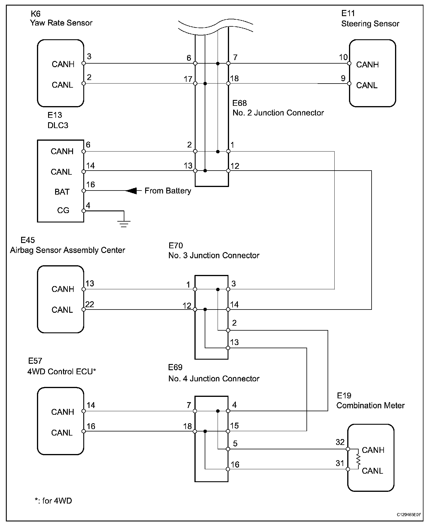 When any DTC for the CAN communication system is output, first measure the resistance between the terminals of the DLC3 to specify the trouble area, and check that there is not a short in the CAN main wire, between the main wire, to +B, or to GND.