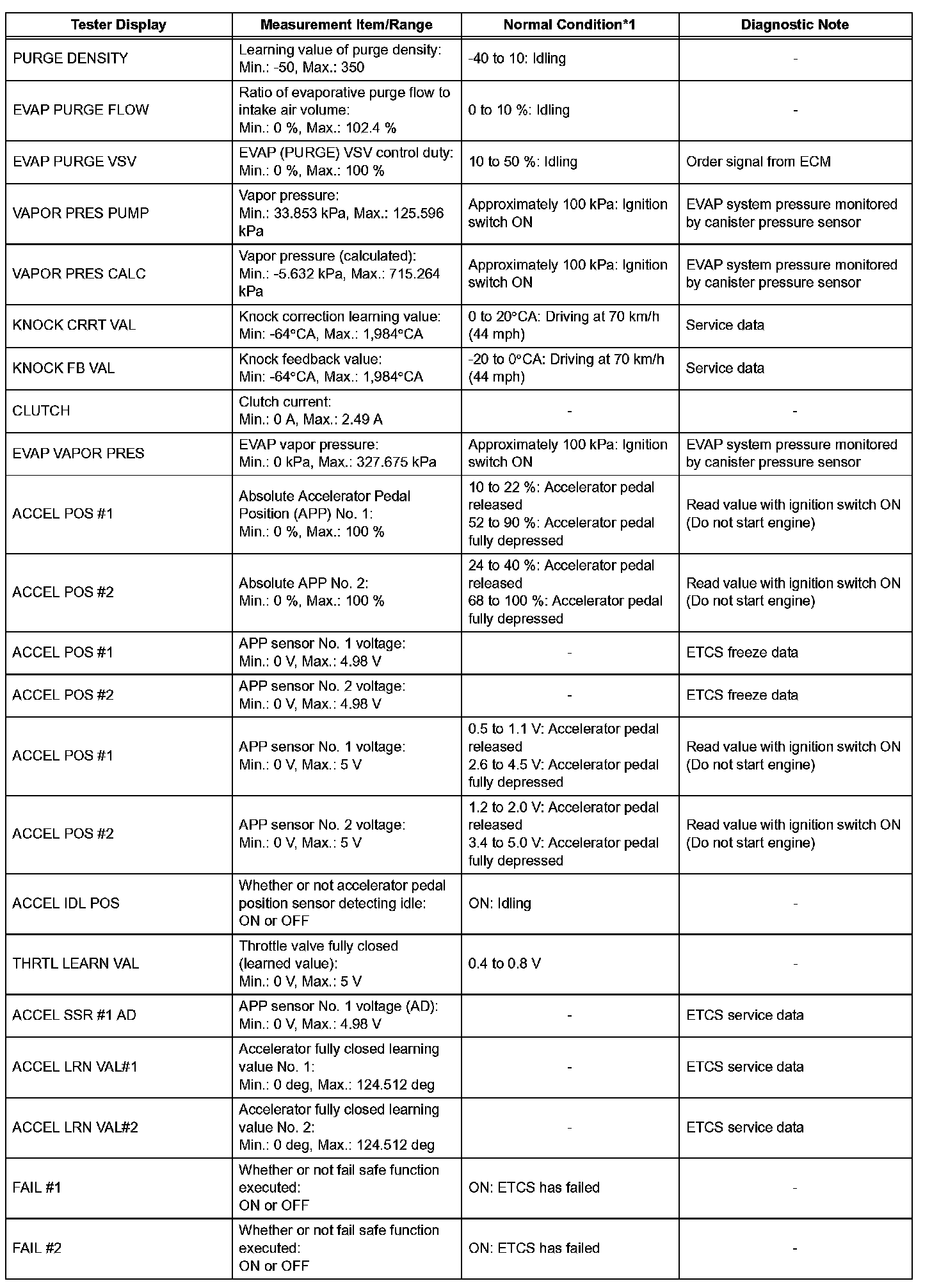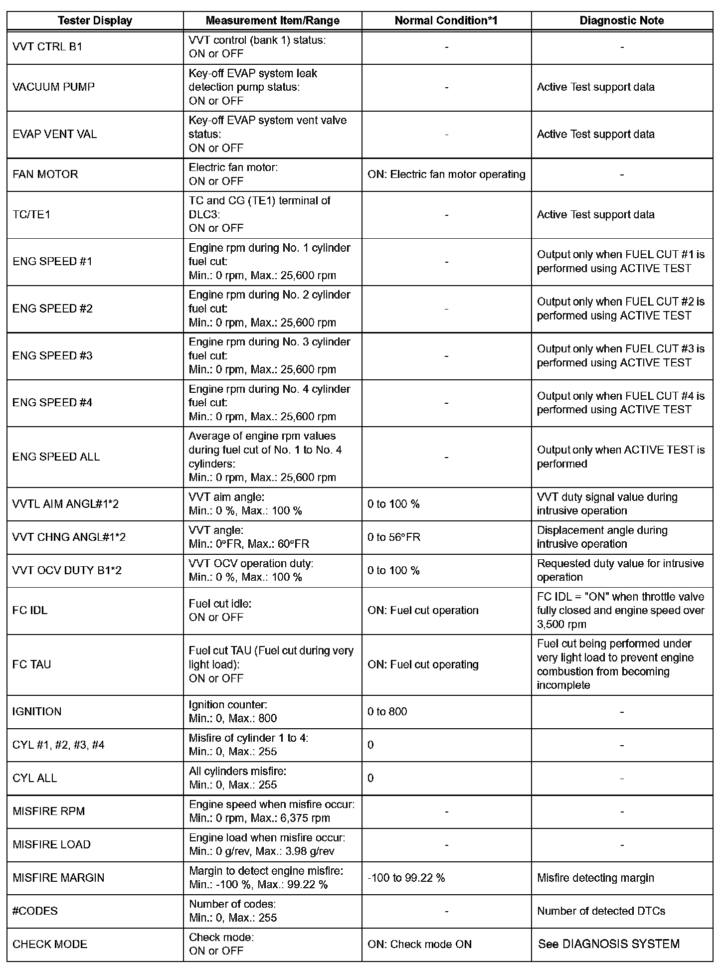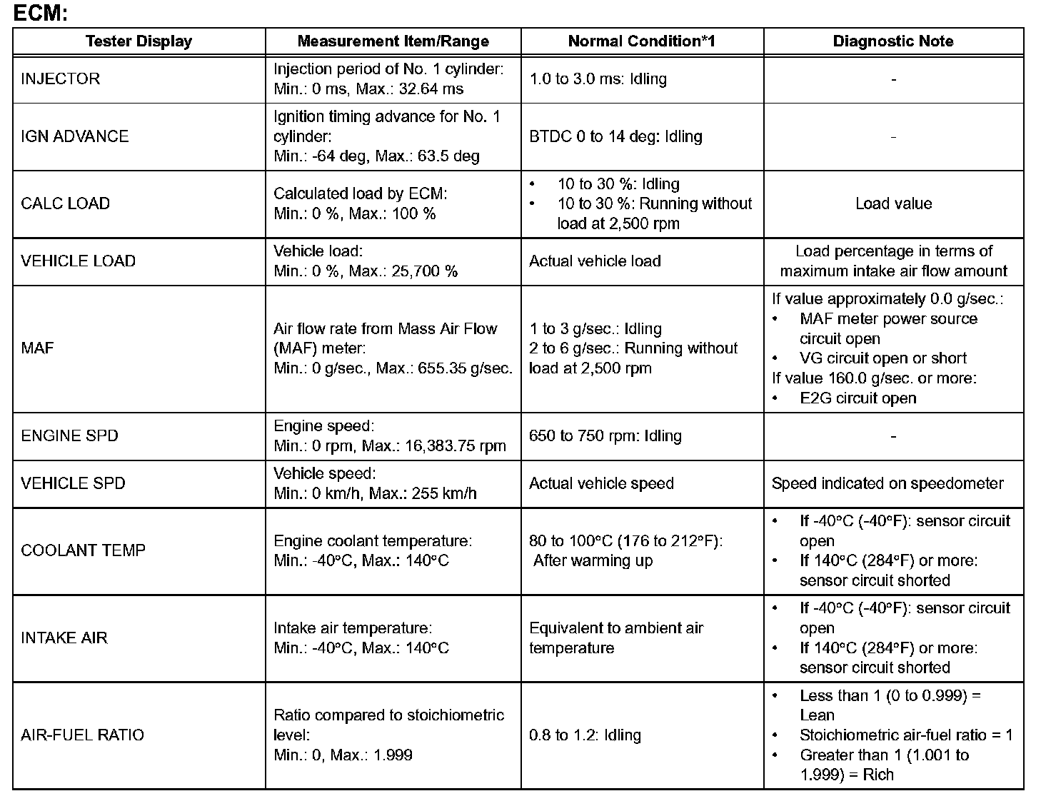 DATA LISTHINT: By reading the DATA LIST displayed on an intelligent tester, values can be checked, including those of the switches, sensors, and actuators, without removing any parts. Reading the DATA LIST as the first step of troubleshooting is one method of shortening diagnostic time.