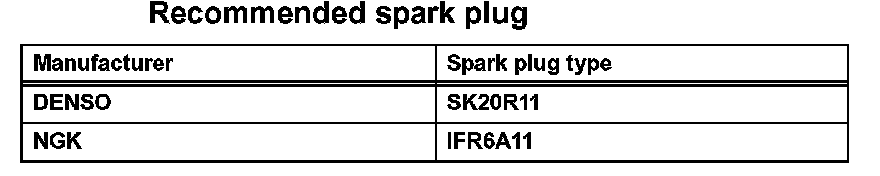 Electrode gap for new spark plug: 1.0 to 1.1 mm (0.039 to 0.043 in.)