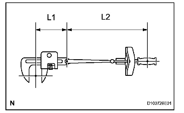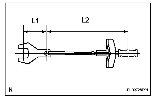 1. Use the formula below to calculate special torque values for situations where SST or an extension tool is combined with a torque wrench.