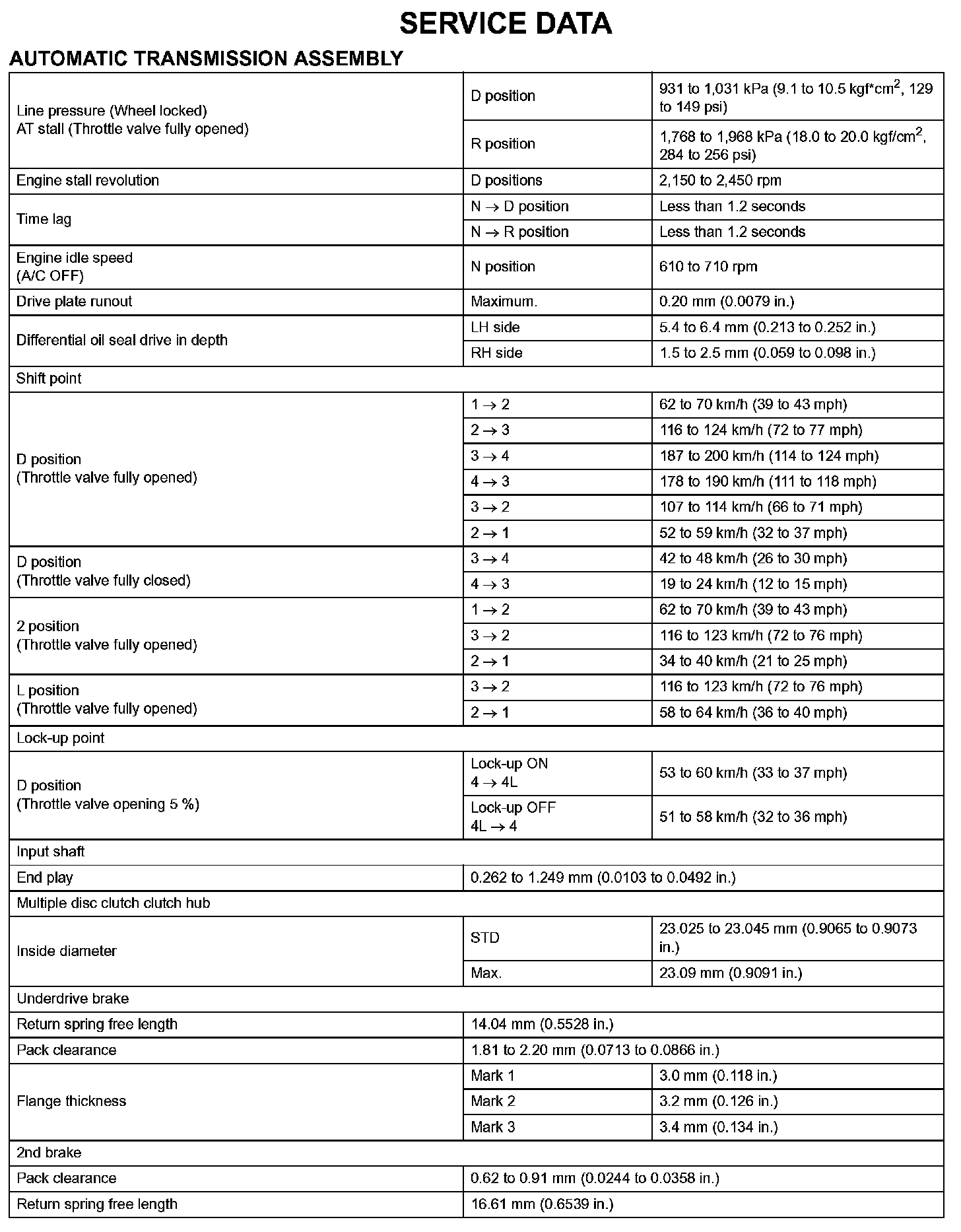 Automatic Transaxle - Service Data (Part 2):