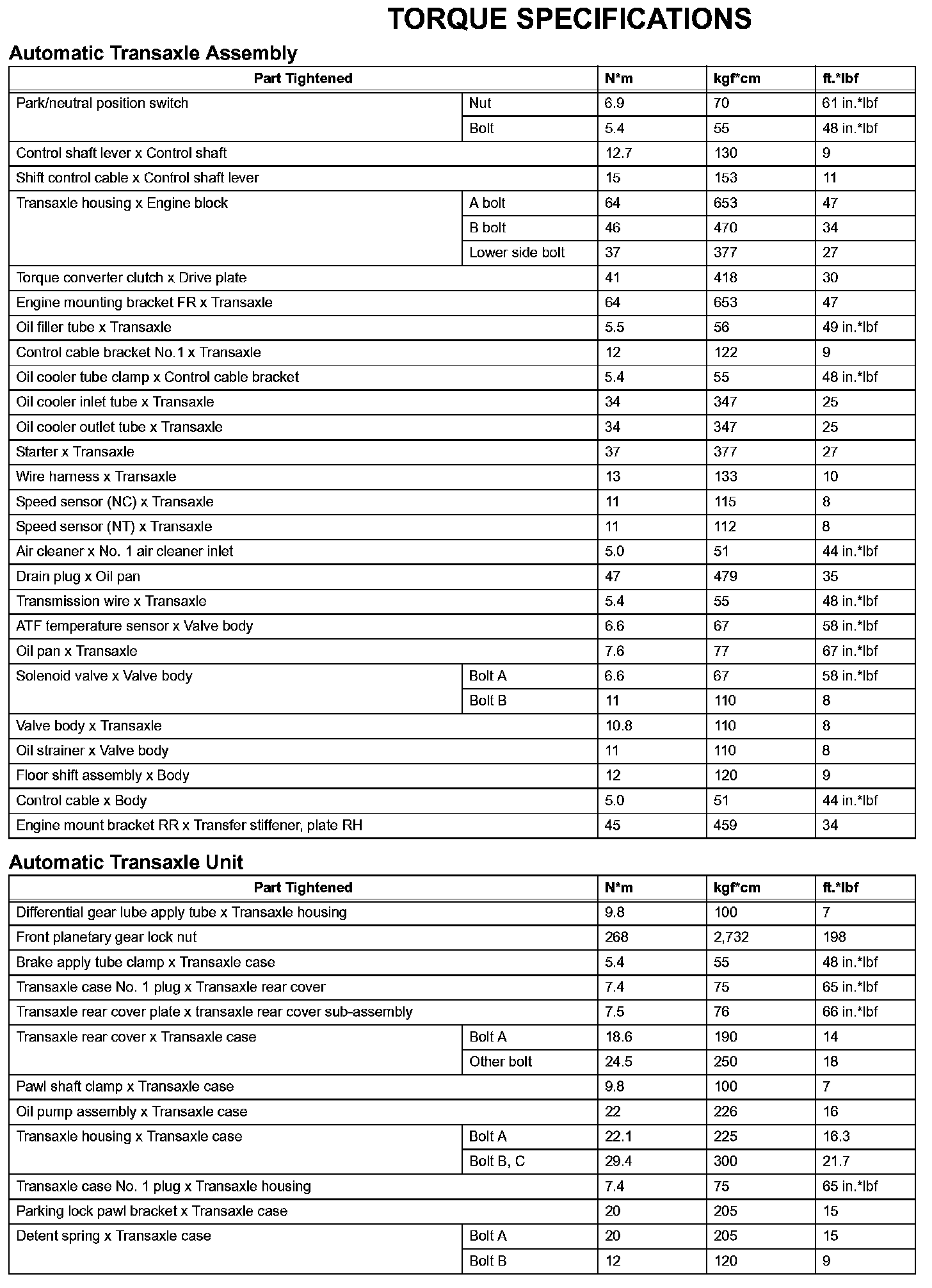 Automatic Transaxle - Torque Specifications (Part 2):