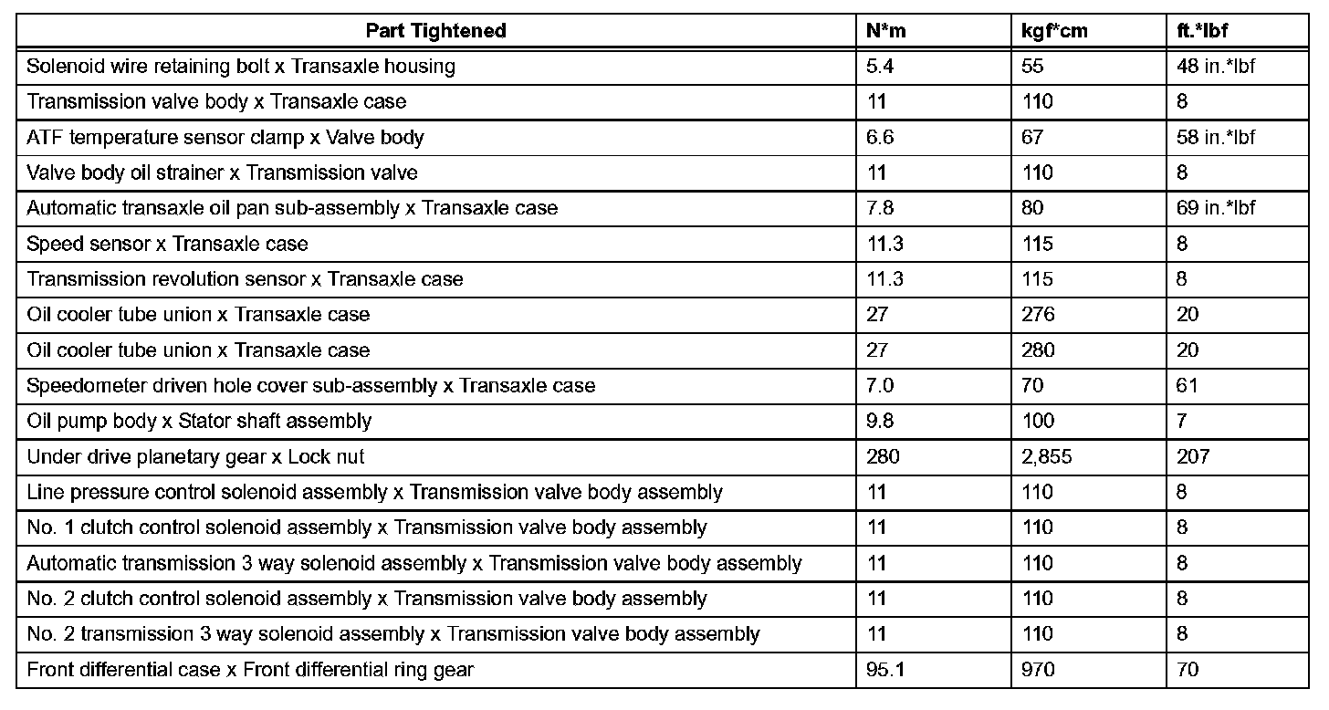 Automatic Transaxle - Torque Specifications (Part 1):