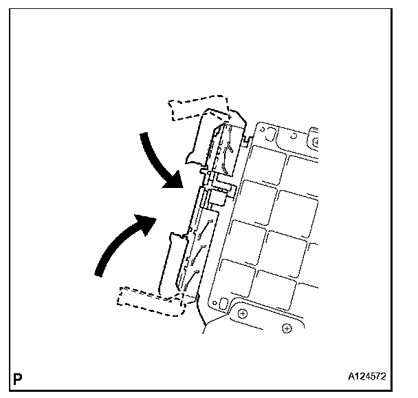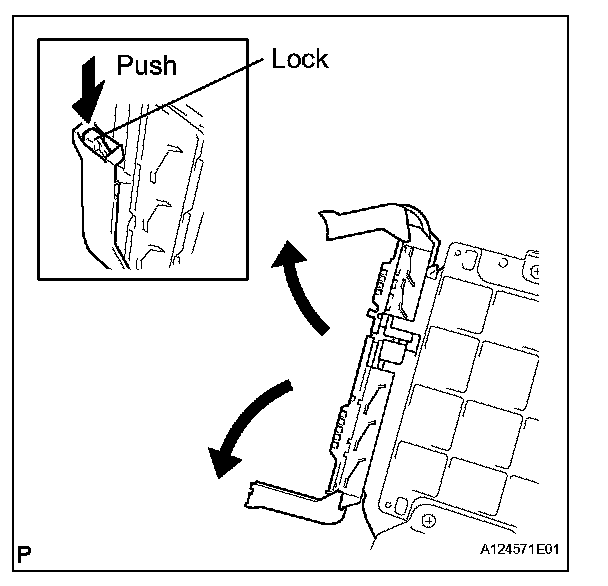 1. Raise the 2 levers while pushing the locks on the 2 levers, and disconnect the 2 ECM connectors.