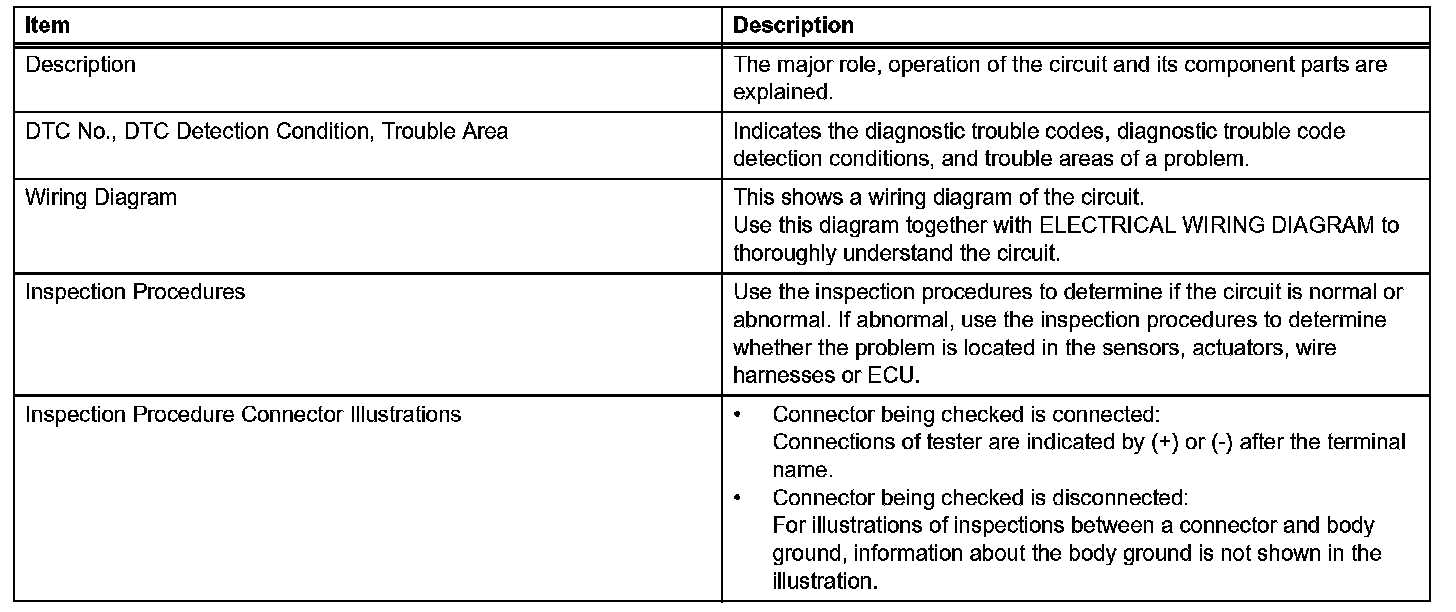 A description of the main areas of each circuit inspection is given.
