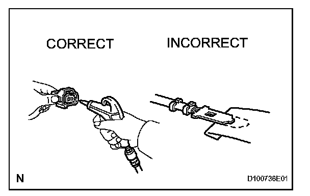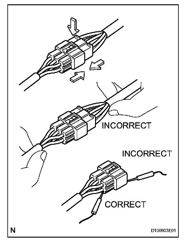 5. If checking a connector with a TOYOTA electrical tester, check the connector from the backside (harness side) using a mini test lead.