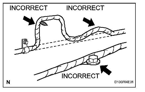 5. Never cut or break the cover of the wire harness. If it is cut or broken, repair the cover with vinyl tape or replace the wire harness.