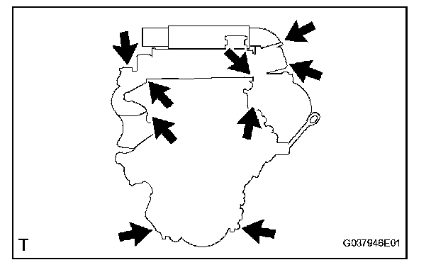 1. Check if the indicated portions of the engine assembly are cracked, leaking or damaged.