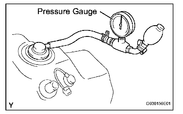 e. Apply pressure of 4 kPa (41 gf/sq.cm, 0.58 psi) to the vent port of the fuel tank.