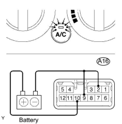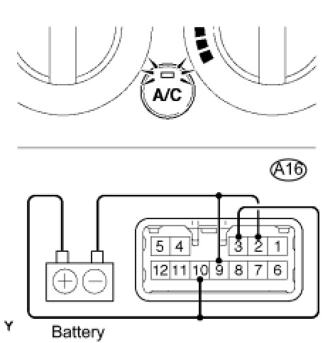 (2) Push the A/C button in and then check that the indicator lights up.