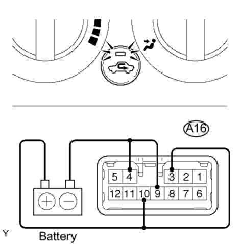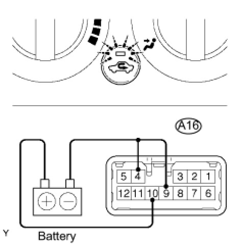 (1) Apply battery voltage (13.5V) across terminals 10 (IG) and 9 (GND).