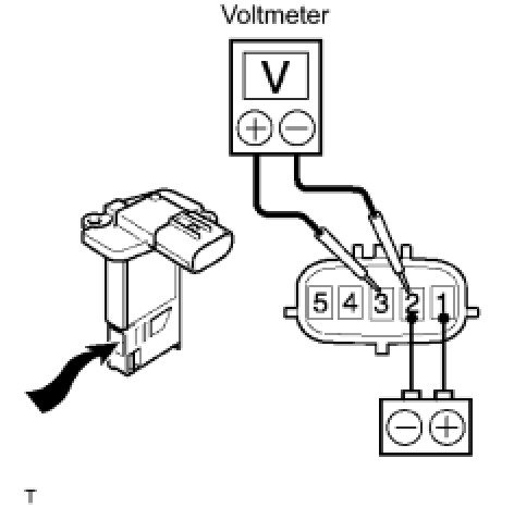 (3) Blow air into the mass air flow meter and check that the voltage fluctuates.