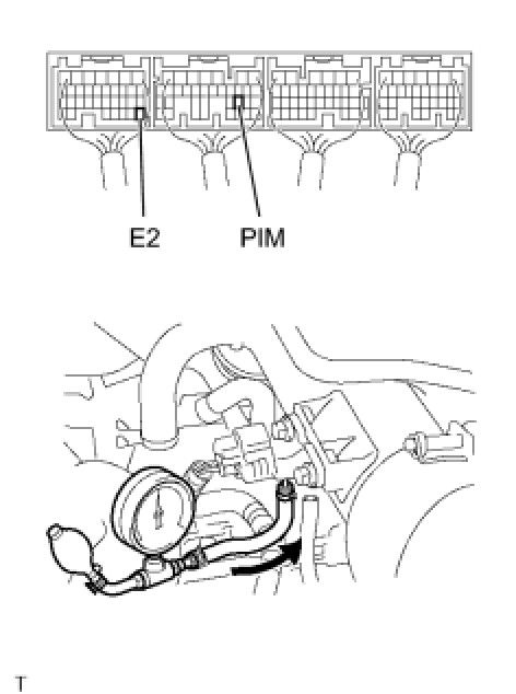 (2) Connect a voltmeter to terminals PIM and E2 of the ECM and measure the output voltage under ambient atmospheric pressure.