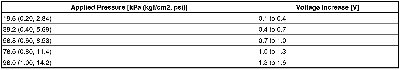(1) Using SST (turbocharger pressure gauge), apply air to the turbo pressure sensor at the pressures shown in the table below.