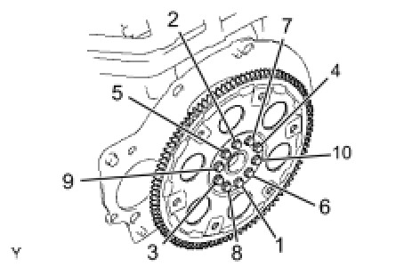 Using several steps, uniformly install and tighten the 10 bolts in the sequence shown in the illustration.