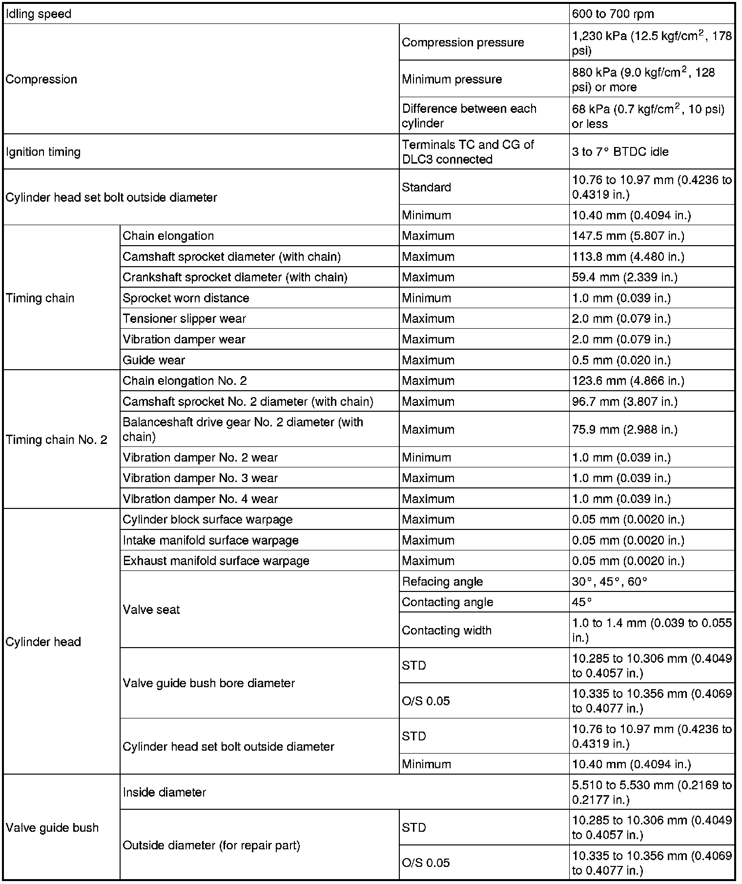 SERVICE SPECIFICATIONS: 2TR-FE ENGINE MECHANICAL: SERVICE DATA