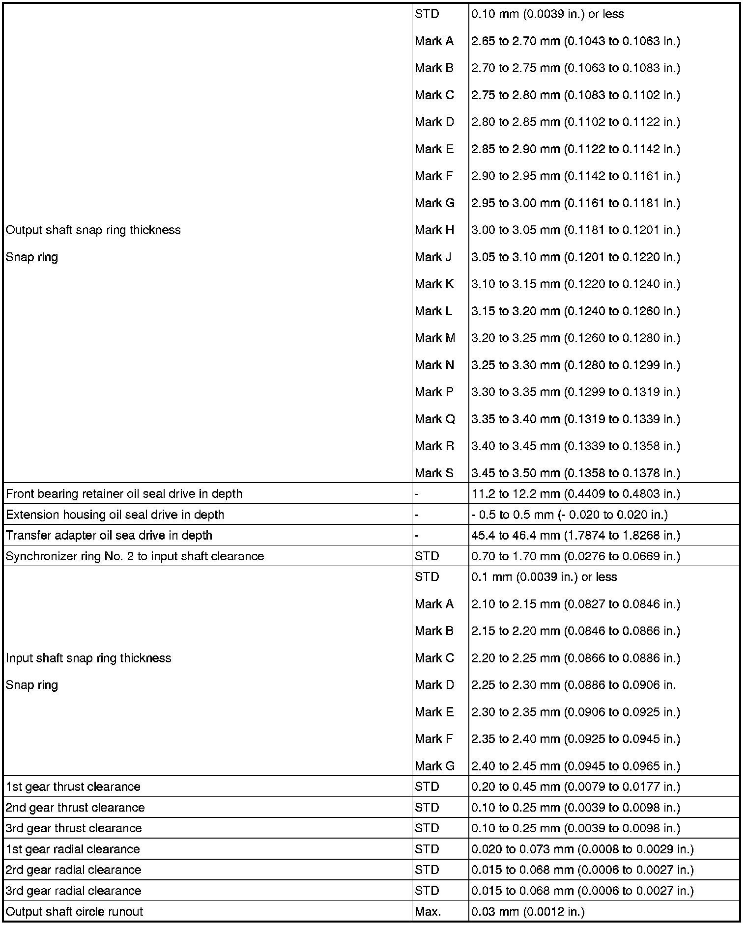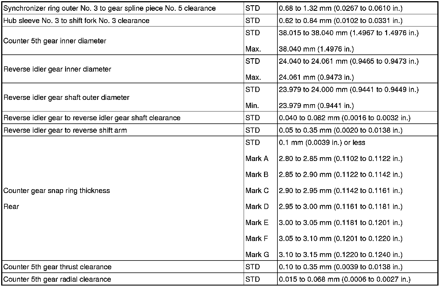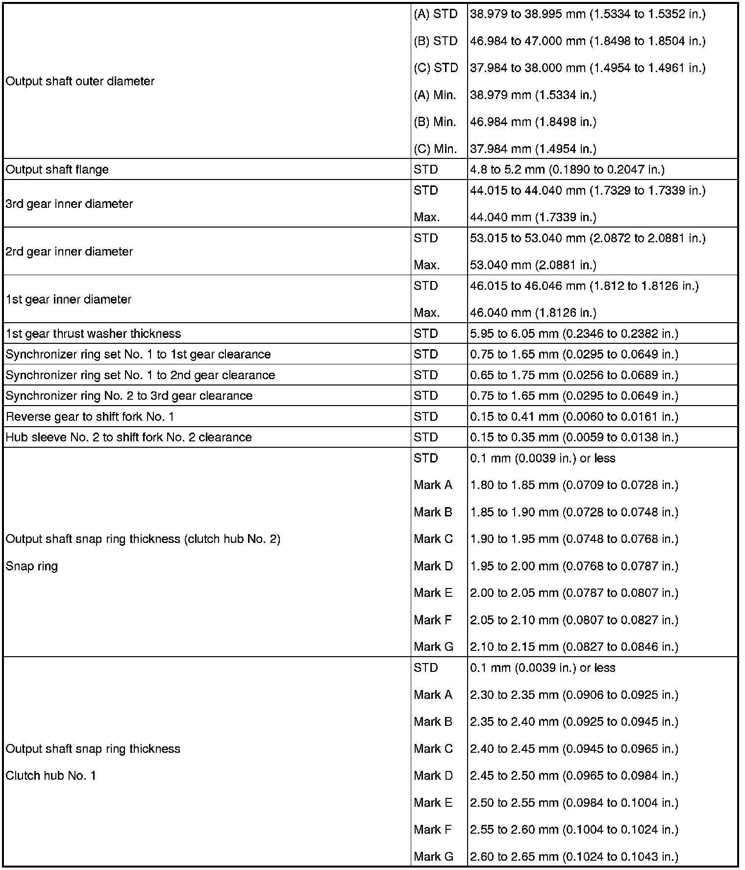 SERVICE SPECIFICATIONS: R155 MANUAL TRANSMISSION: SERVICE DATA