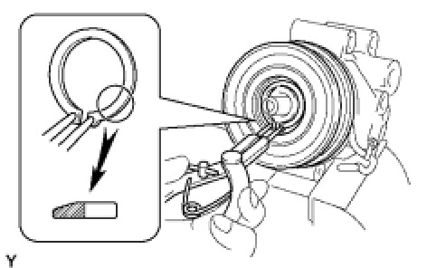 NOTICE: Take care not to damage the seal cover of the bearing when installing the snap ring.