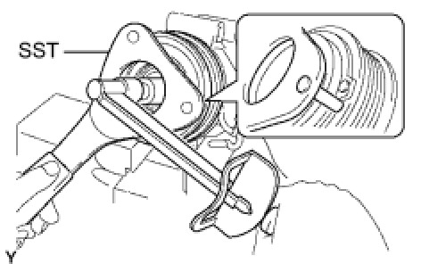 (d) Using SST, install the magnet clutch rotor and a new snap ring with the chamfered side facing up.