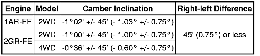 Camber is not adjustable. If the measurement is not within the specified range, inspect the suspension parts for damage and/or wear, and replace them if necessary.