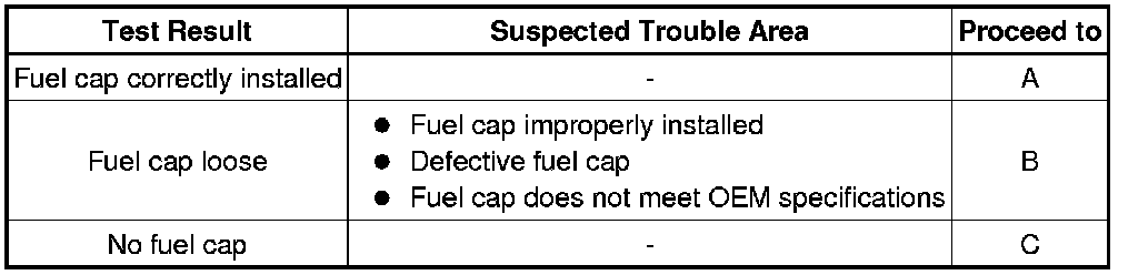 (a) Check that the fuel cap is correctly installed and confirm the fuel cap meets OEM specification.