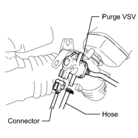 (c) Disconnect the hose (connected to the canister) from the purge VSV.