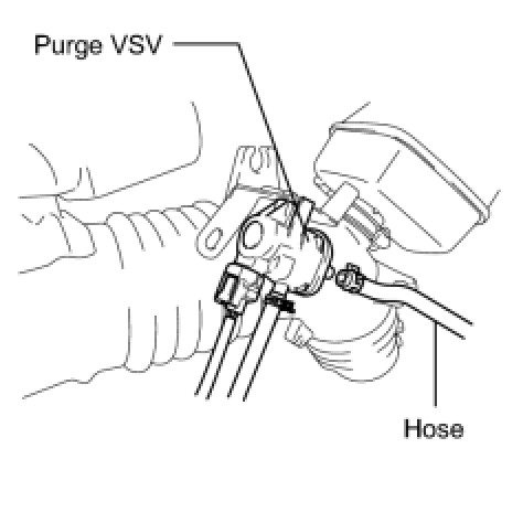 (a) Disconnect the hose (connected to the throttle body) from the purge VSV.
