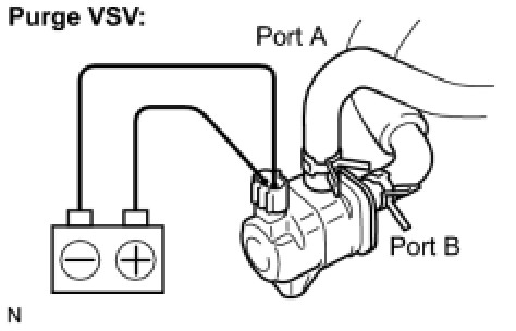 (b) Apply battery voltage to the terminals of the purge VSV.