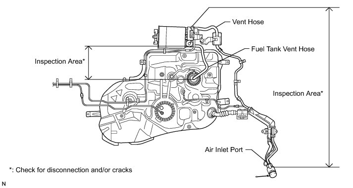 When replacing the canister, check the canister pump module interior and related pipes for water, fuel and other liquids. If liquids are present, check for disconnections and/or cracks in the following parts: 1) the pipe from the air inlet port to the canister pump module; 2) the canister filter; 3) the fuel tank vent hose.