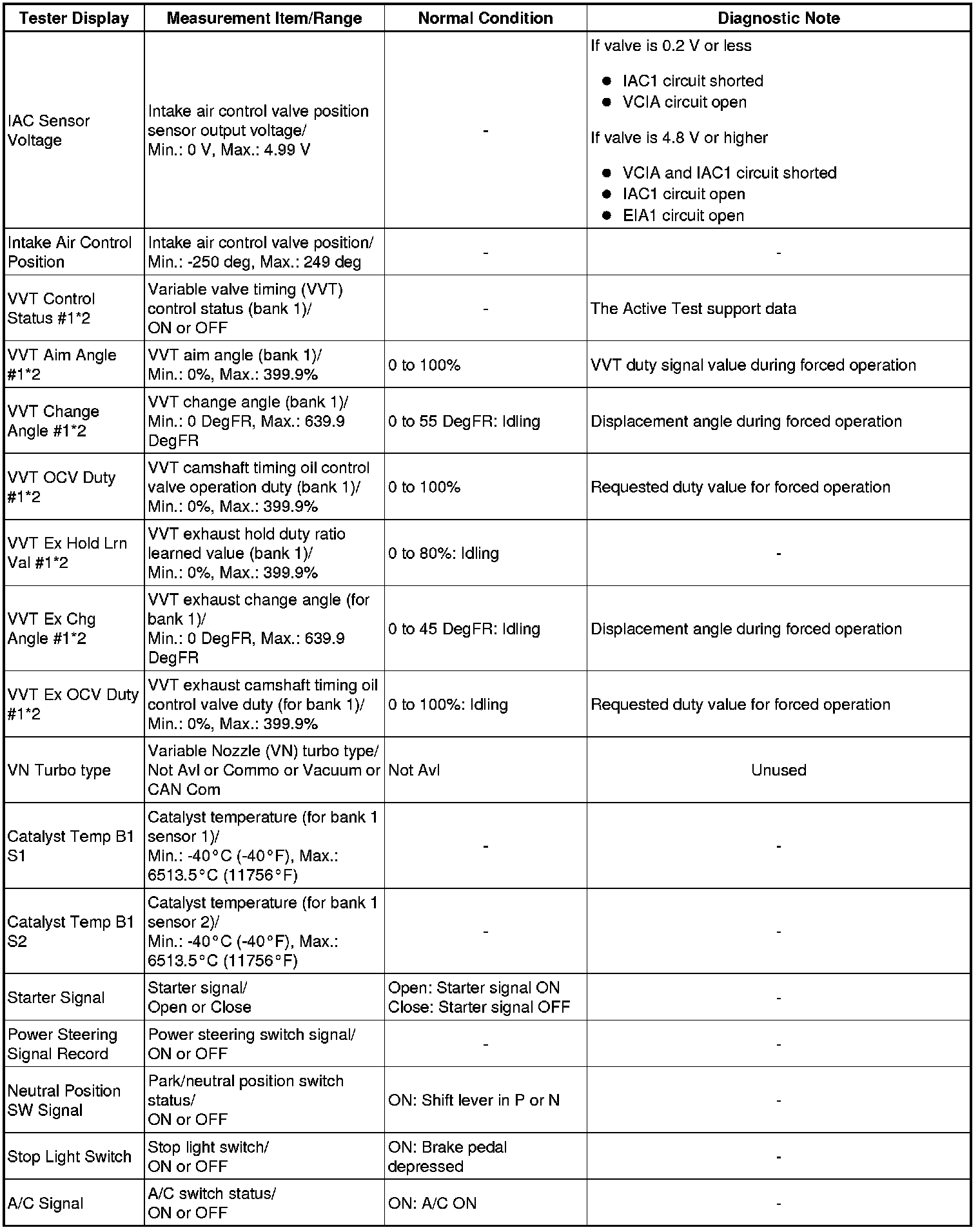 * *2: Data List values are only displayed when performing the following Active Test: Control the VVT System (Bank 1), Control the VVT Linear (Bank 1). For other Active Test, the Data List value will be 0.