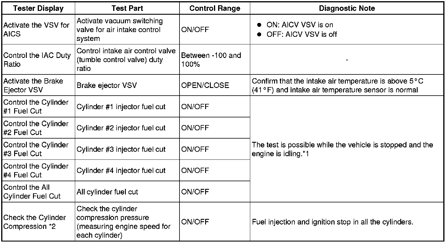 *2: When performing the Active Test item "Check the Cylinder Compression" and then cranking the engine, the ECM stops the fuel injection and ignition, and measures the engine speed for each cylinder.