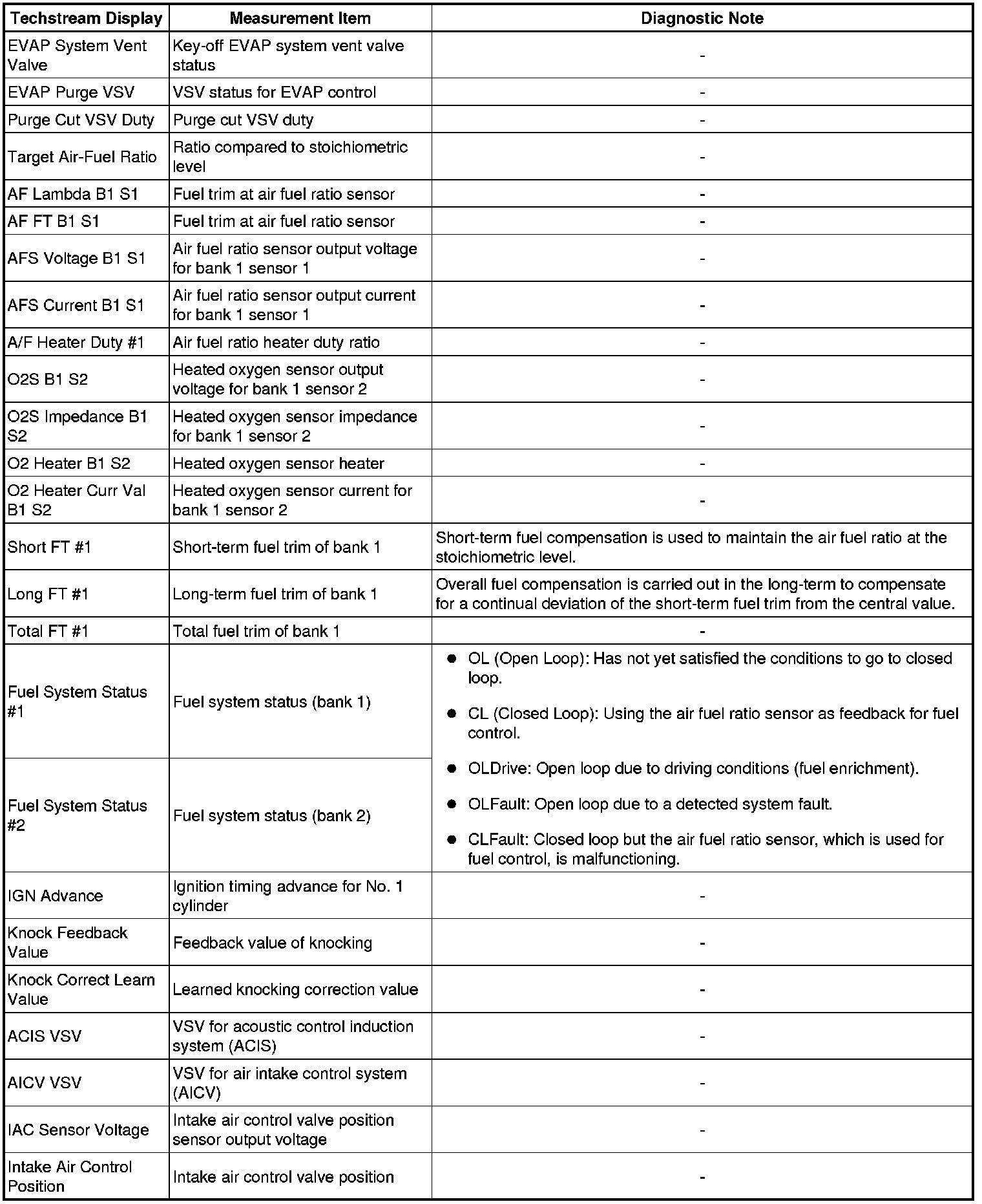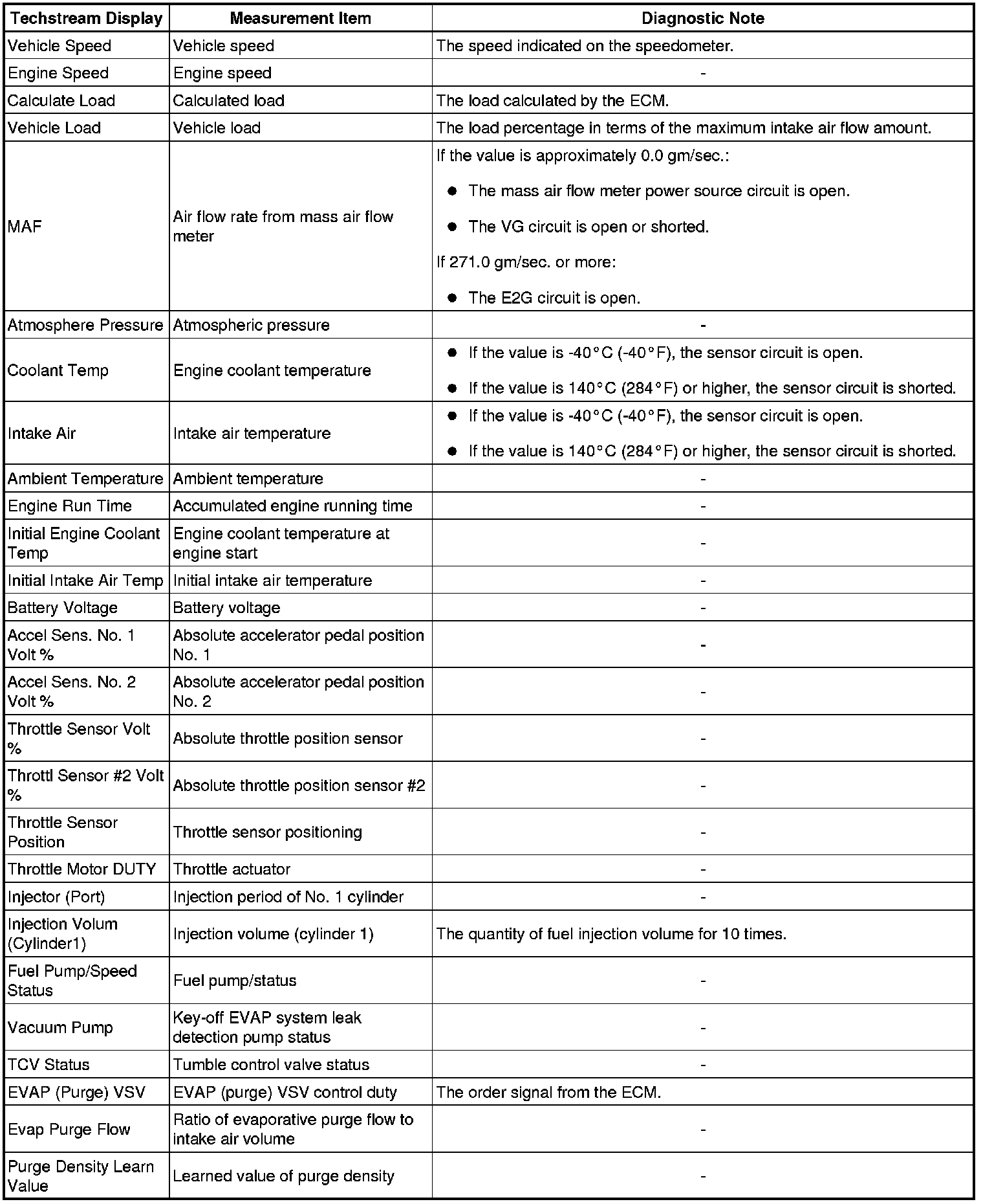 * The ECM records vehicle and driving condition information as freeze frame data the moment a DTC is stored. When troubleshooting, freeze frame data can be helpful in determining whether the vehicle was moving or stationary, whether the engine was warmed up or not, whether the air fuel ratio was lean or rich, as well as other data recorded at the time of a malfunction.