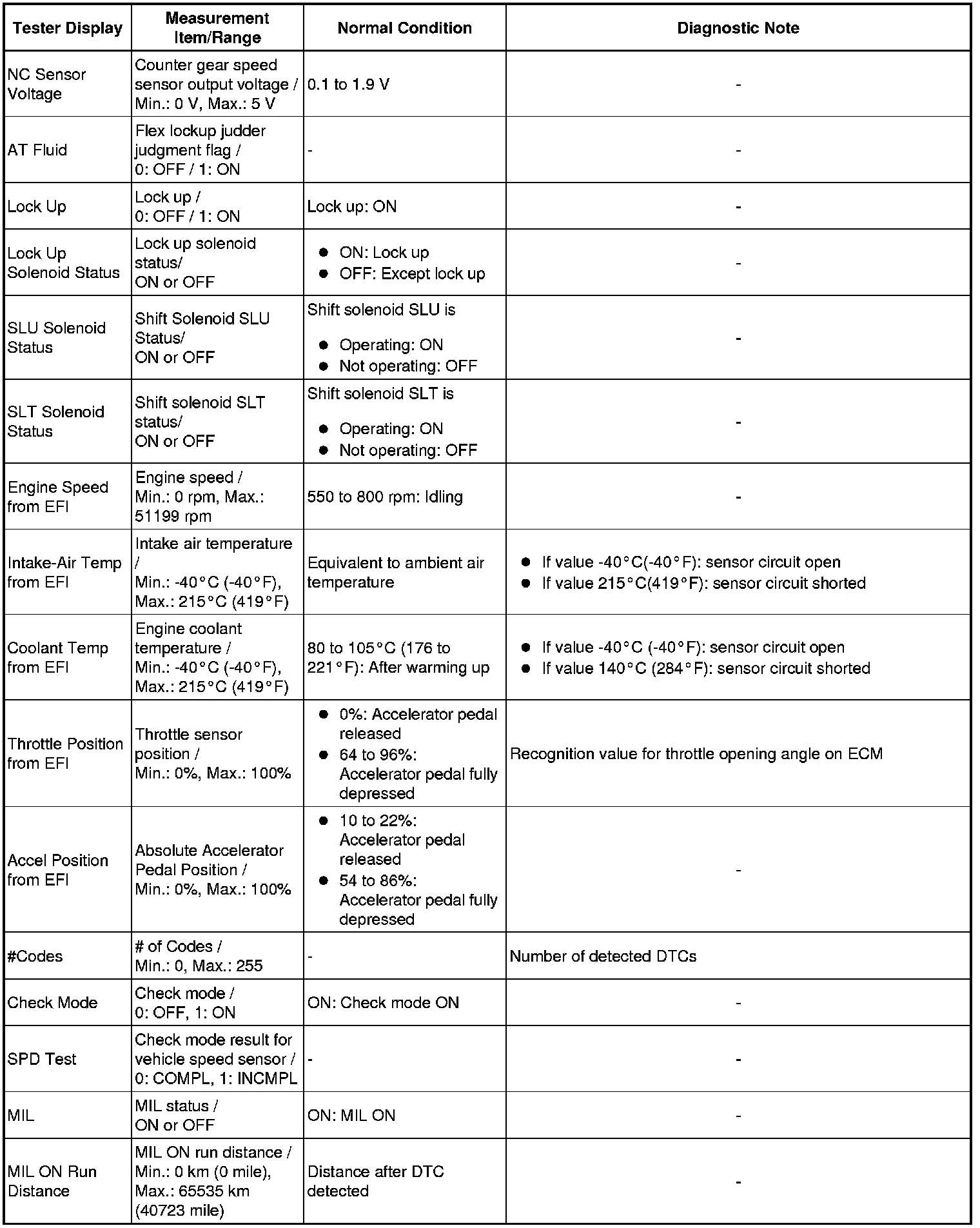 U760E AUTOMATIC TRANSAXLE: AUTOMATIC TRANSAXLE SYSTEM: DATA LIST / ACTIVE TEST