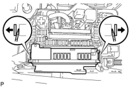 (a) Using a screwdriver with its tip wrapped in protective tape, disengage the 2 claws and disconnect the engine room junction block assembly.
