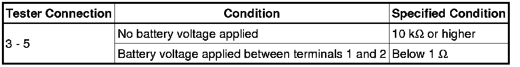 (b) If the result is not as specified, replace the relay.