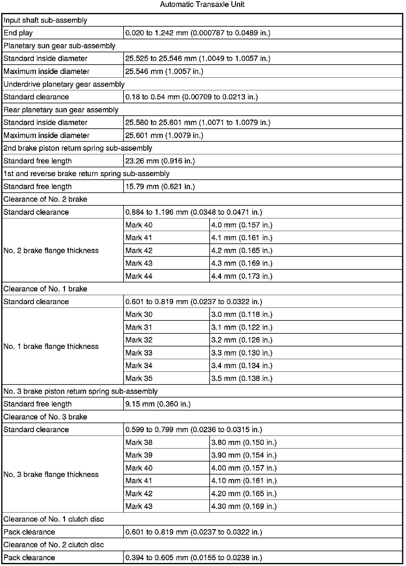 SERVICE SPECIFICATIONS: U760E AUTOMATIC TRANSAXLE: SERVICE DATA