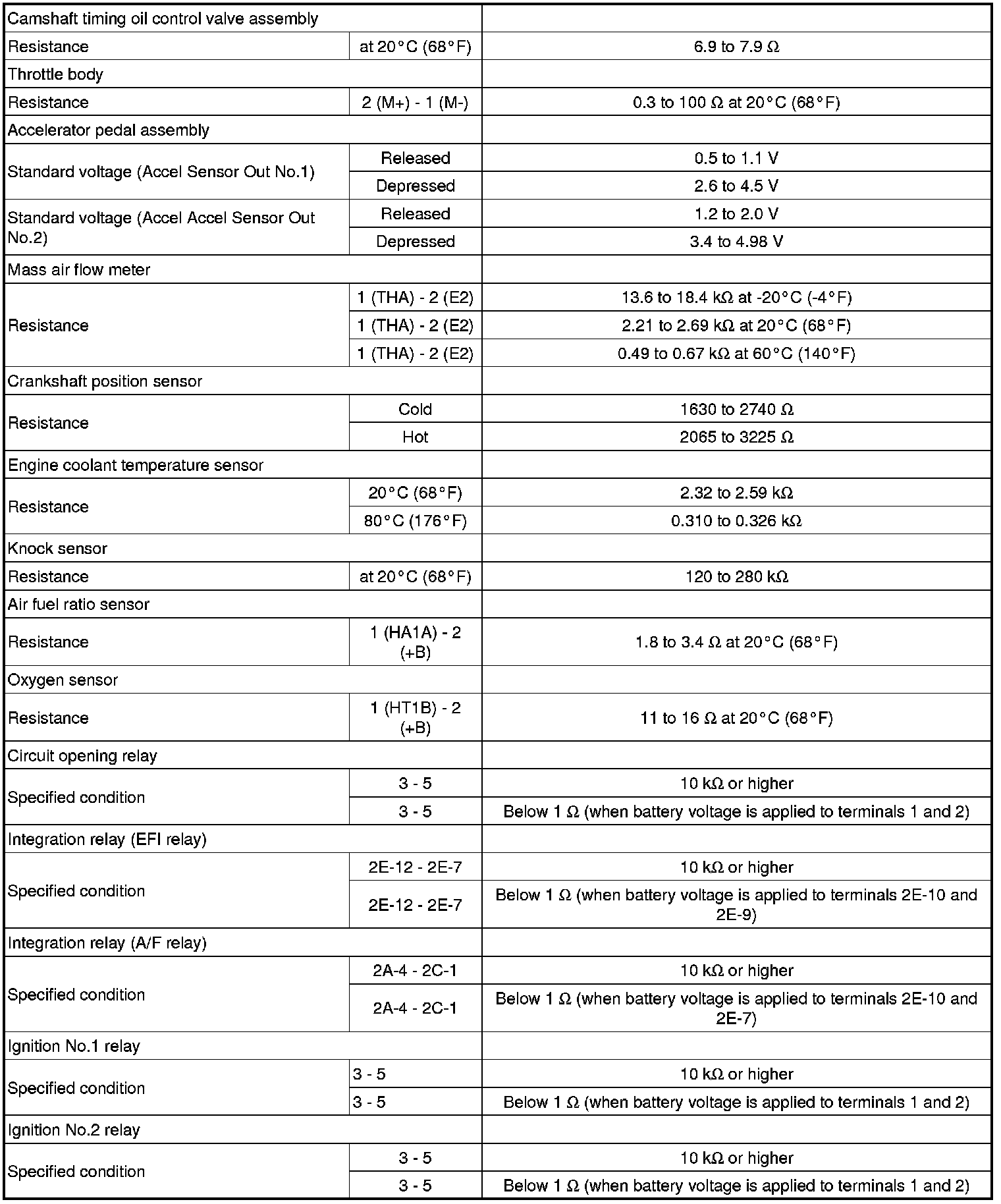 SERVICE SPECIFICATIONS: 1AR-FE ENGINE CONTROL SYSTEM: SERVICE DATA
