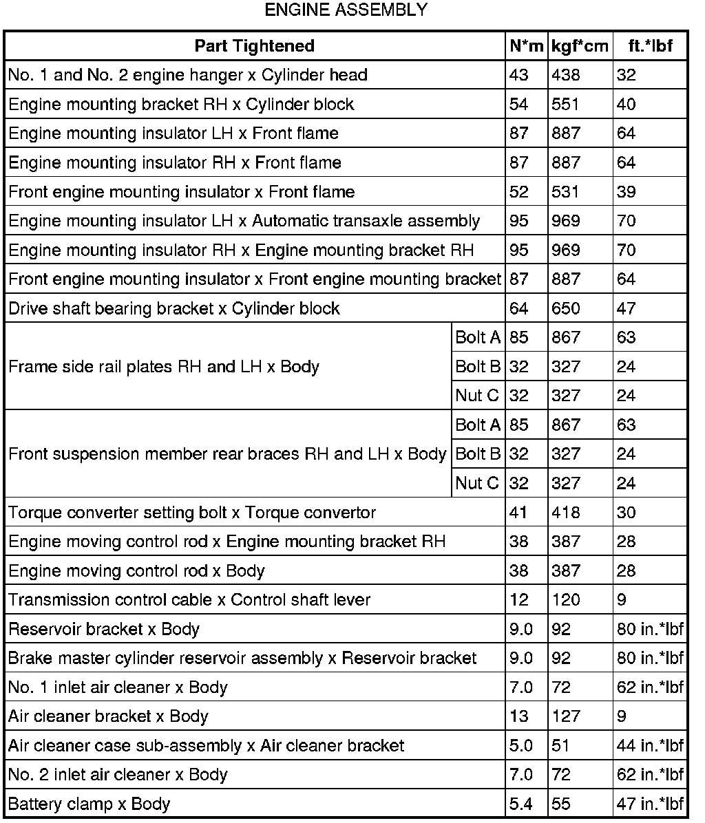 SERVICE SPECIFICATIONS: 1AR-FE ENGINE MECHANICAL: TORQUE SPECIFICATIONS