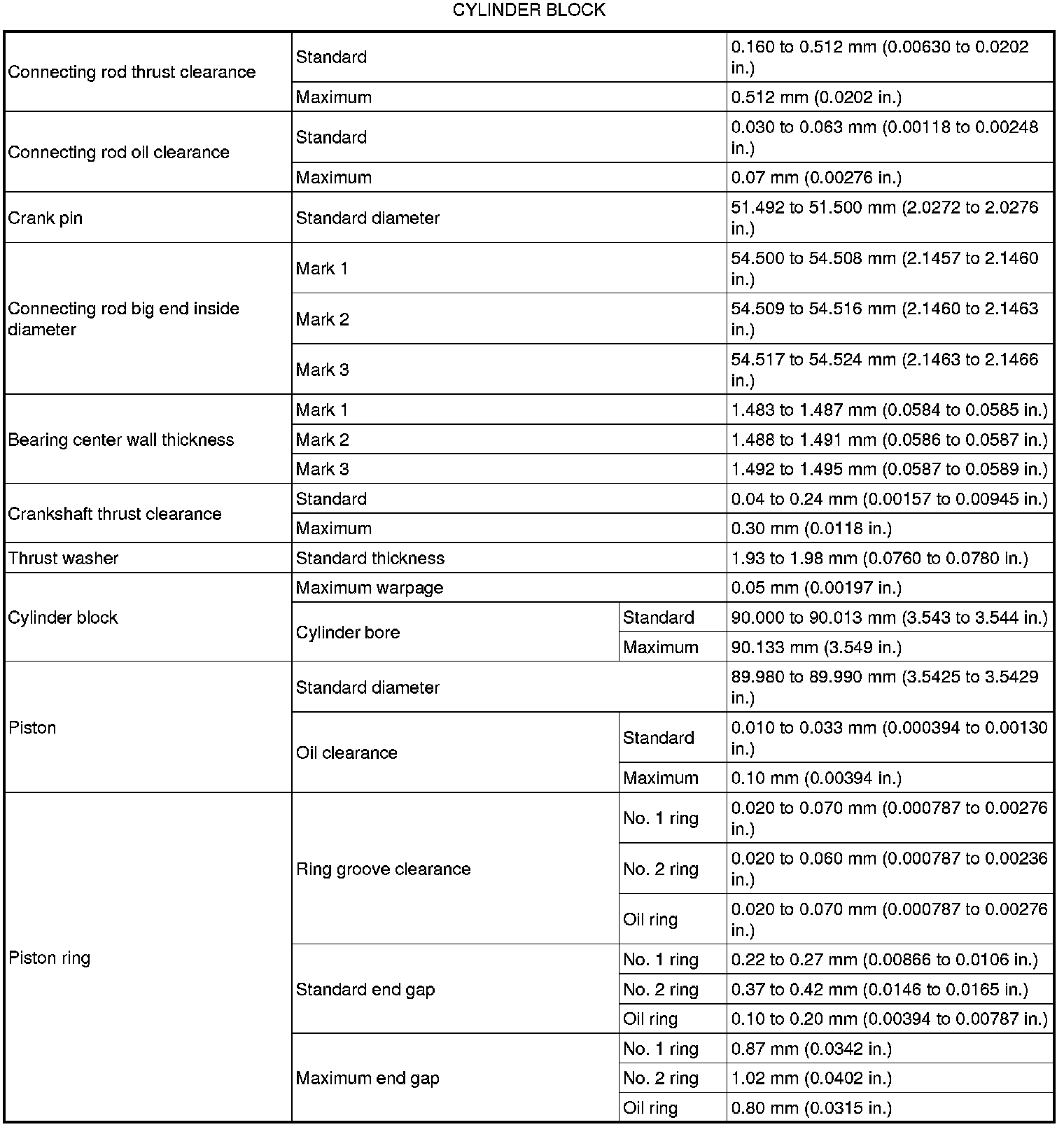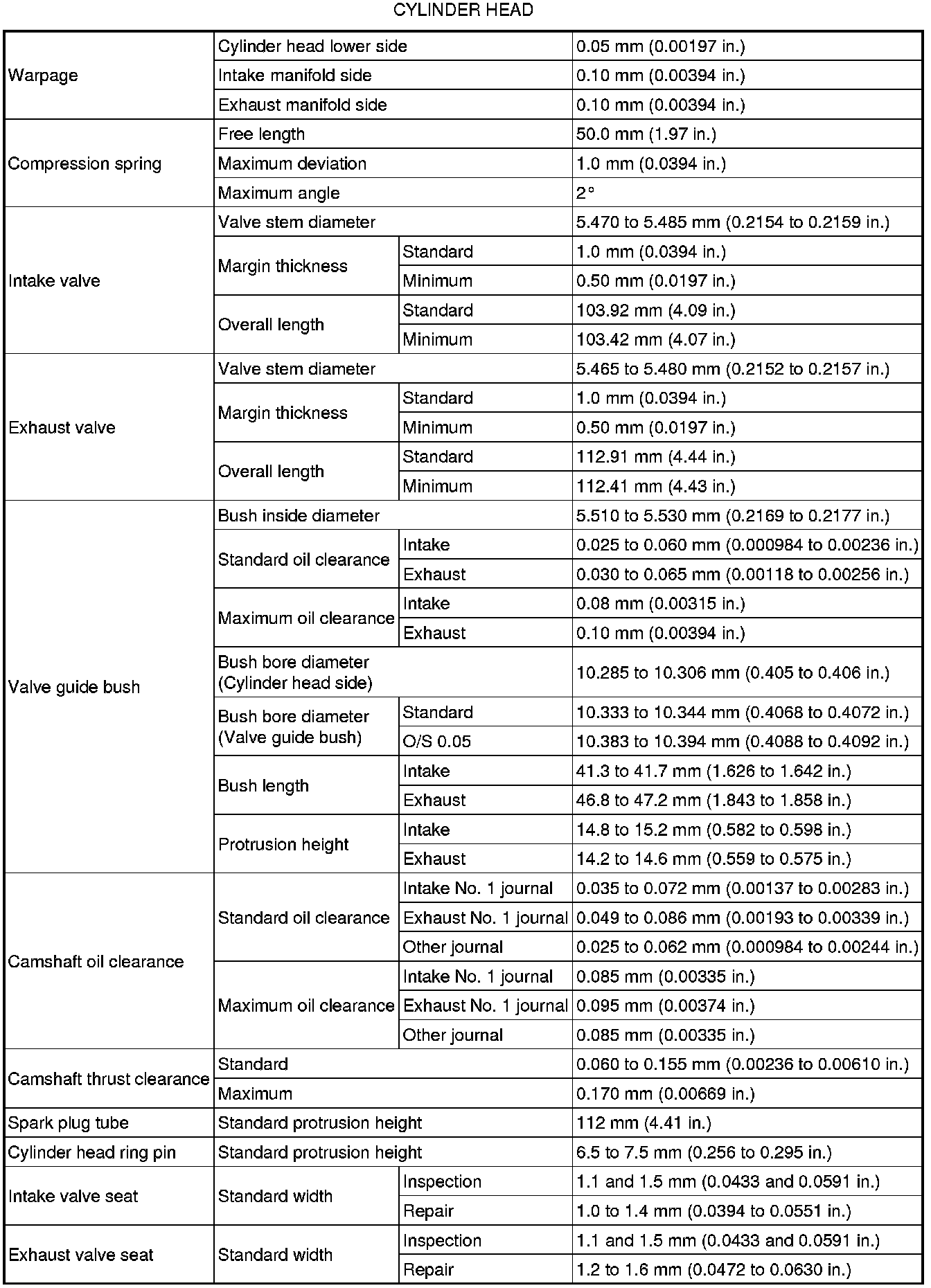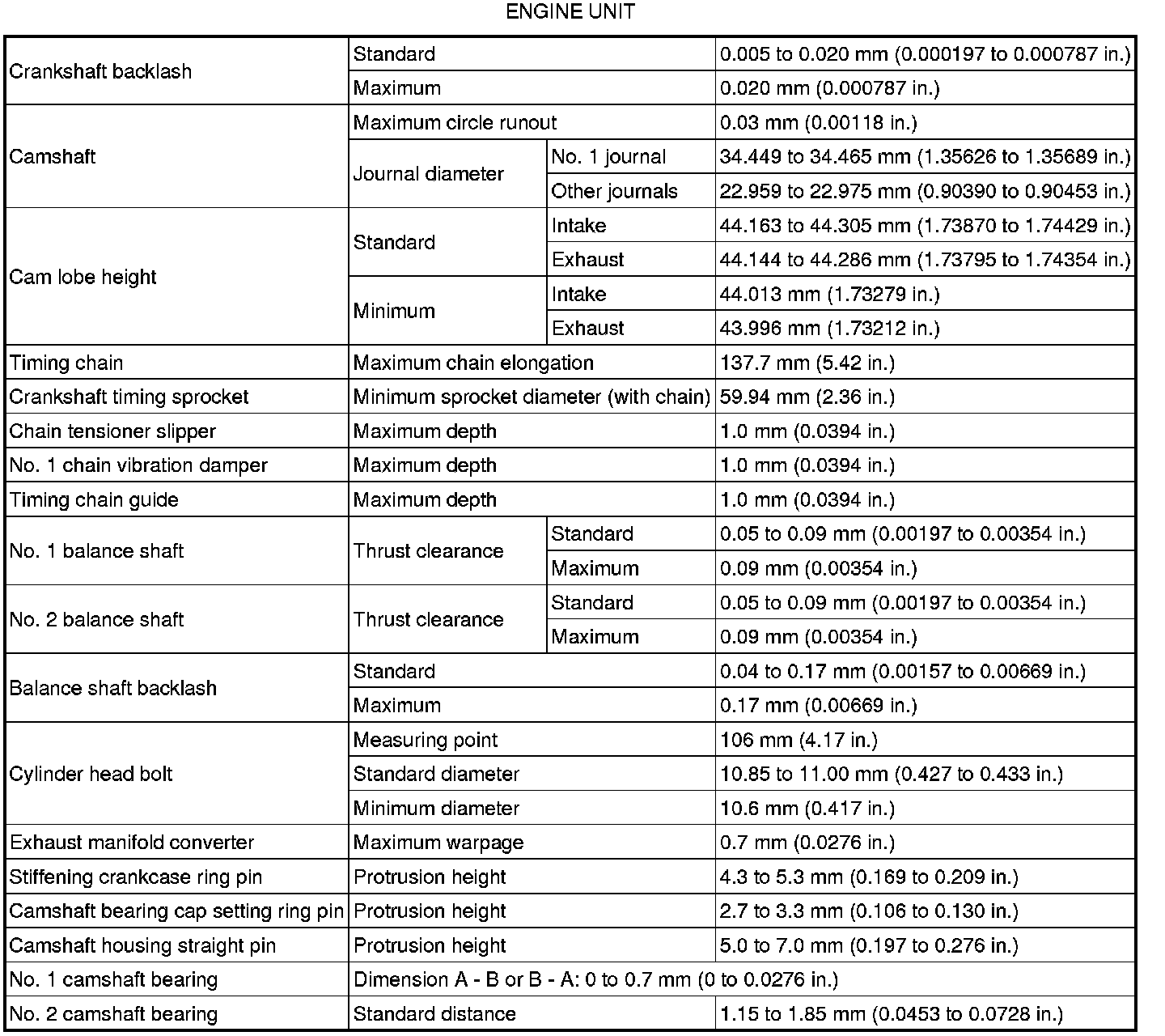 SERVICE SPECIFICATIONS: 1AR-FE ENGINE MECHANICAL: SERVICE DATA