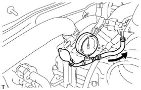 (5) Check that the pressure displayed on the Techstream fluctuates when applying pressure to the pressure sensor with the pressure gauge.