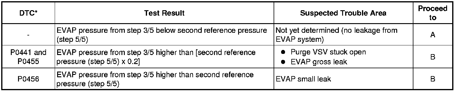 (b) Compare the EVAP pressure in step 3/5 and the second reference pressure (step 5/5).