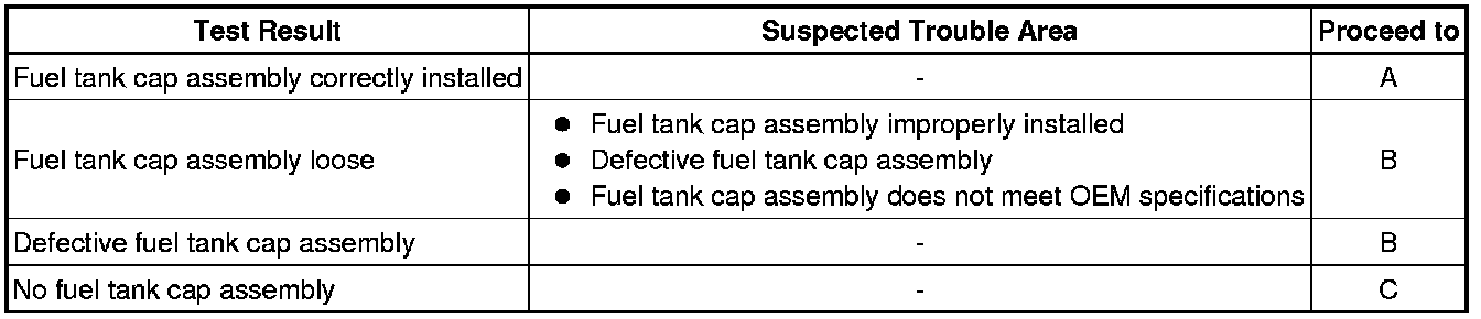 (a) Check that the fuel tank cap assembly is correctly installed and confirm that the fuel tank cap assembly meets OEM specifications.