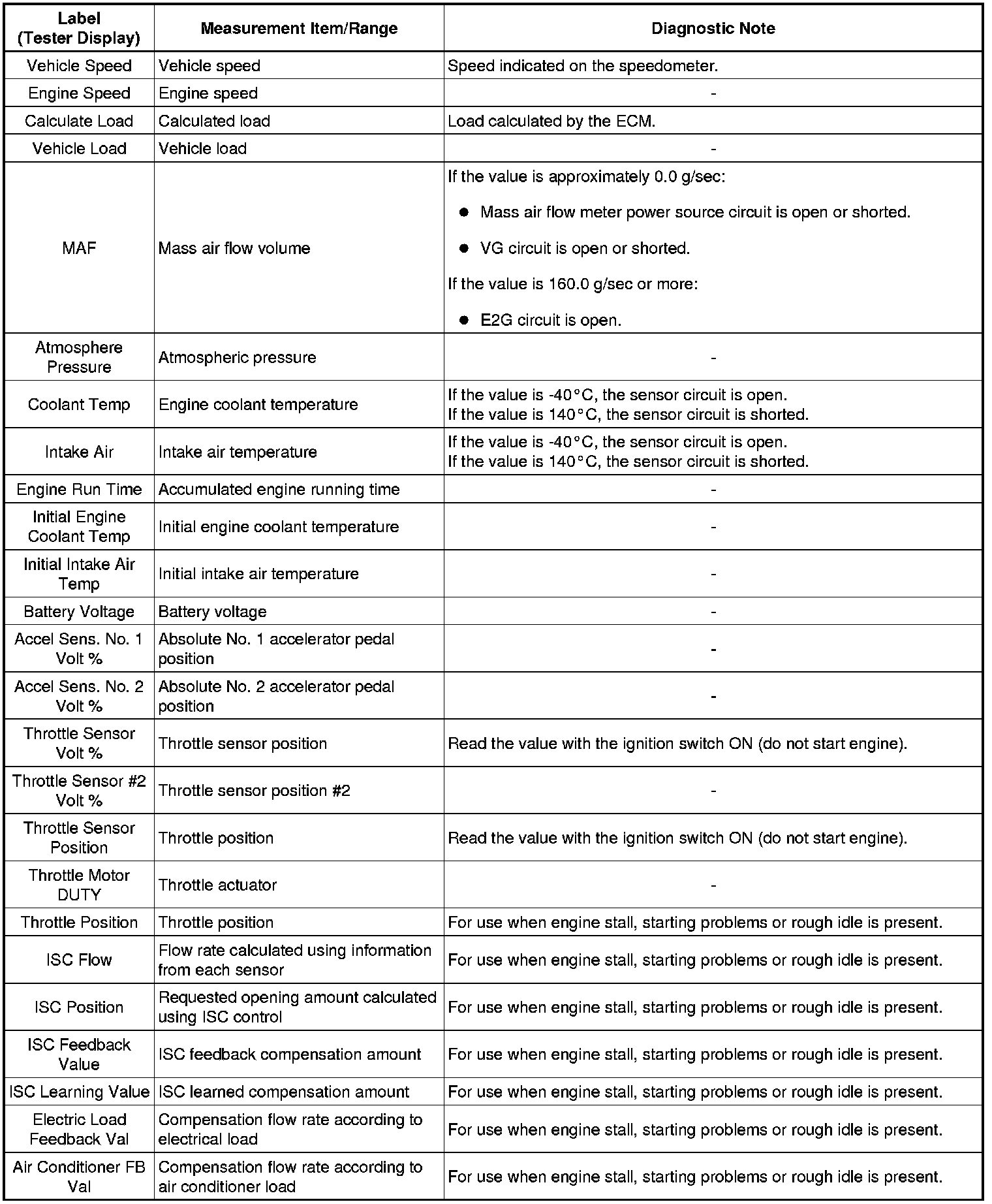 2TR-FE ENGINE CONTROL: SFI SYSTEM: FREEZE FRAME DATA