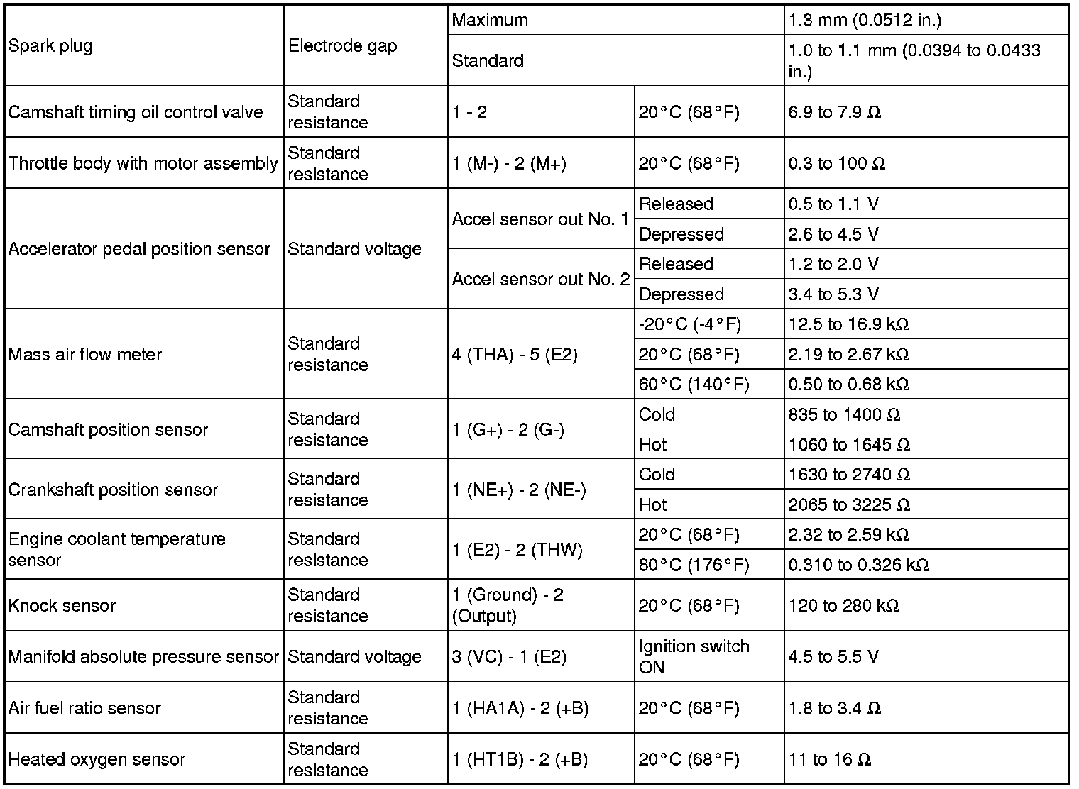 SPECIFICATIONS: 2TR-FE ENGINE CONTROL: SERVICE DATA