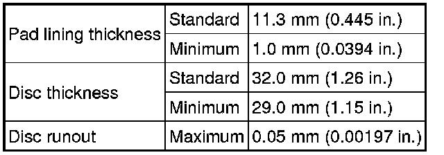SPECIFICATIONS: BRAKE (FRONT): SERVICE DATA