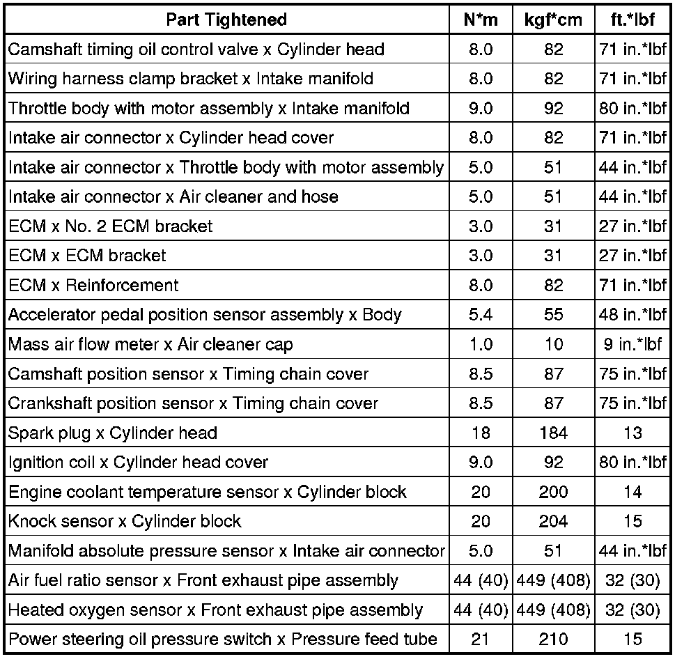 SPECIFICATIONS: 2TR-FE ENGINE CONTROL: TORQUE SPECIFICATIONS