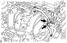 Attach the No. 2 water by-pass hose and connect the No. 3 ventilation hose to the intake manifold.